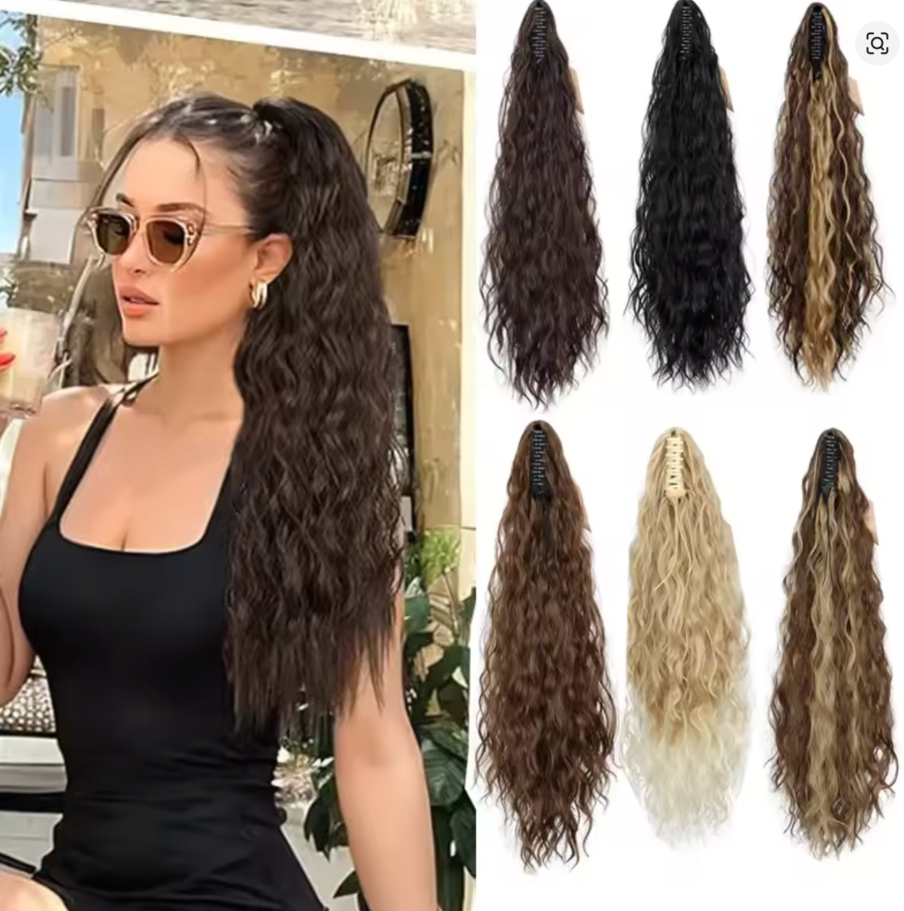 Struggling with flat or short ponytails? Our 26-inch Wavy Claw Clip Ponytail gives you instant length, volume, and glam in seconds.